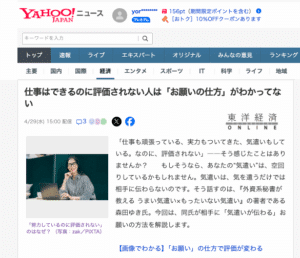 東洋経済オンラインに「仕事はできるのに評価されない人は「お願いの仕方」がわかってない」掲載されました!メディア実績 / By 森田ゆき 東洋経済オンラインにて 「外資系秘書が教えるうまい気遣いもったいない気遣い」より ========== 仕事はできるのに評価されない人は「お願いの仕方」がわかってない ========== が、記事掲載されました! Yahooニュースも同時掲載です! 詳細はこちらです。 ぜひチェックしてみてください。 東洋経済オンライン https://toyokeizai.net/articles/-/942595 Yahooニュース https://news.yahoo.co.jp/articles/628521abd5923627283ba5d462654f9ebf53ebe9