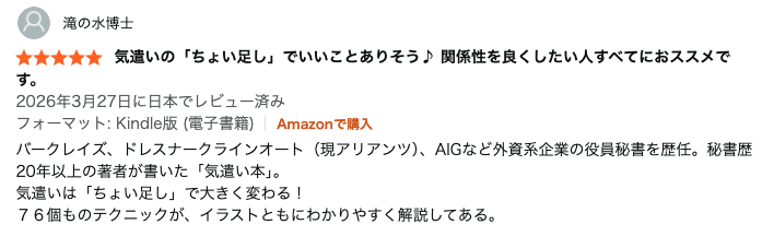 日本では気遣いが美徳であり、ビジネスシーンで重要視されるところがあります。実績を上げ、さらに評価される海外ビジネスパーソンは、「気遣い」の定義とパターンを覚え、後は、「すごく気遣いをしている風」を“ちょい足し”することで相手からの信頼を得ています。お料理でいえば一手間、プレゼントでいえばラッピングで大きく変わるのと同じです。本書では、ビジネスの各シーンで使える”ちょい足し”テクニックをわかりやすく、イラストともに教えます。気遣いが理解できなくても、気遣い人になれる。グローバル企業で国内外の一流ビジネスパーソンが実践し、誰でもすぐ活用できるのに効果が出ていたテクニックです。ほんのちょっとの「気遣い」ができるだけで、人生の自由と可能性は驚くほど変わります。